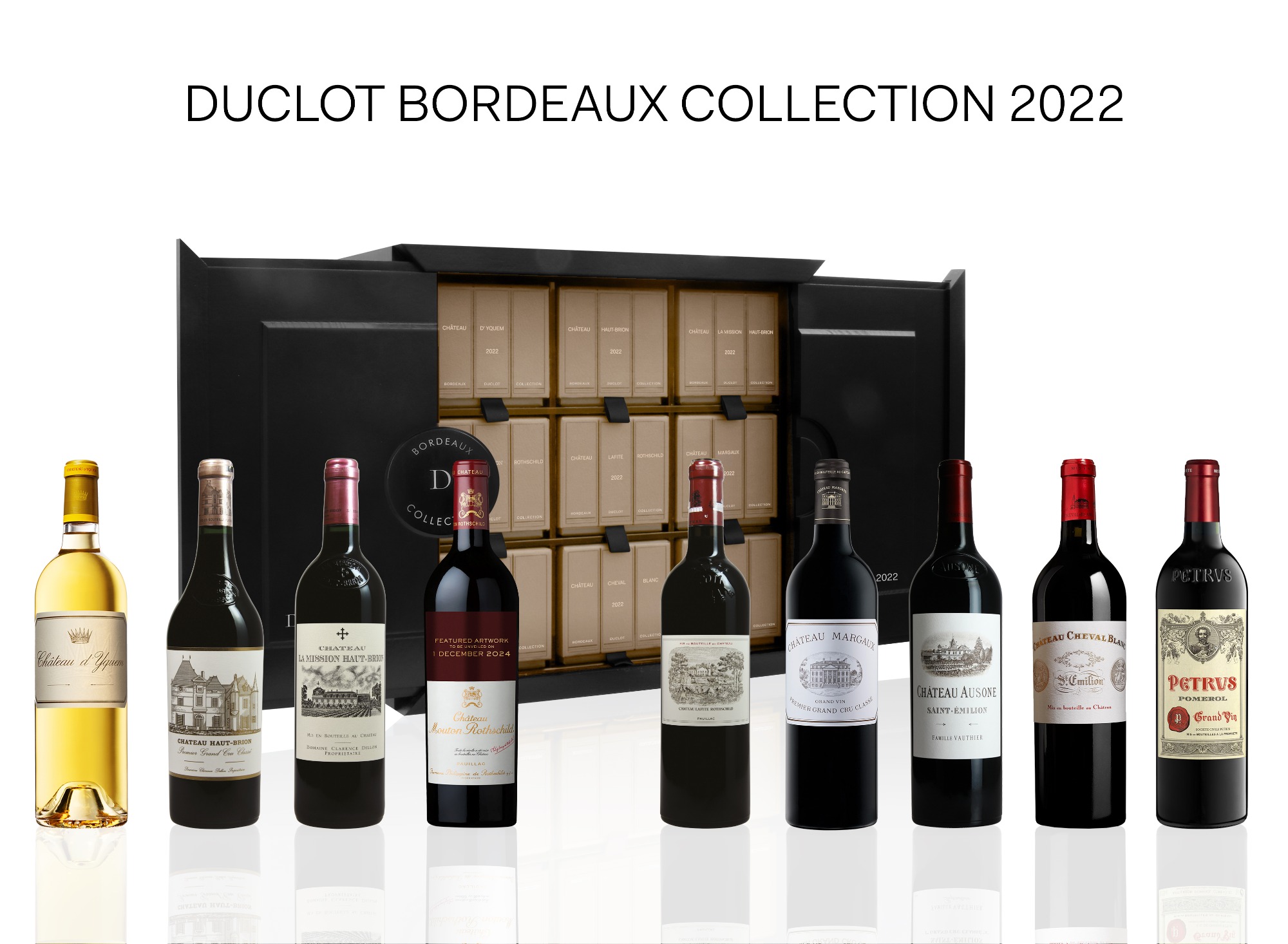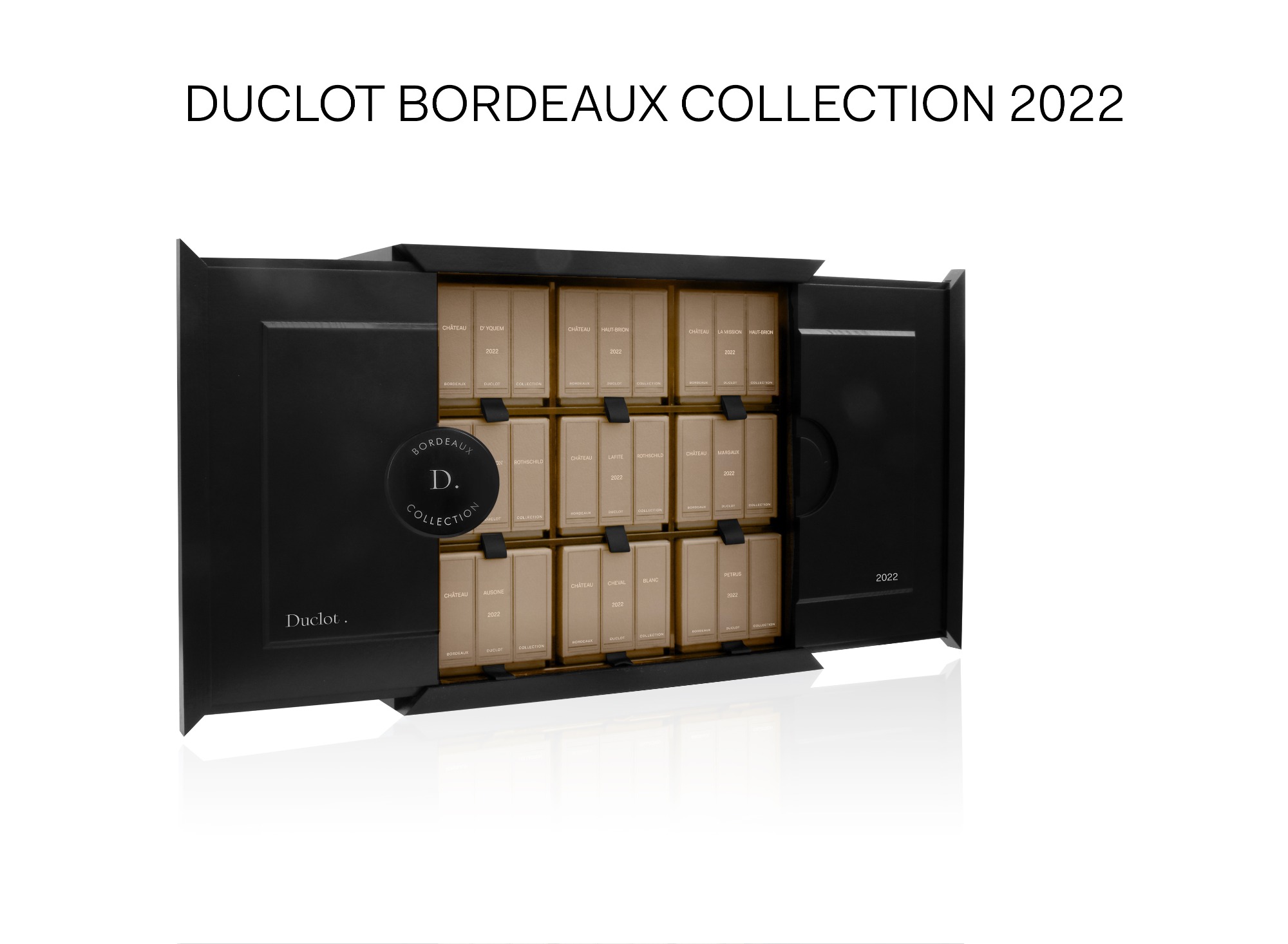 DUCLOT, oftewel de familie Moueix, is al ruim 130 jaar wijnhandelaar in de Bordeaux, met een miljoen flessen exquise Grand Cru wijnen in voorraad in hun kelders. Een van de parels van dat enorme assortiment is deze Duclot Bordeaux Collection 2022. De bordeaux kenner weet dat 2022 behoort tot de allerbeste jaren ooit en deze kluis bevat negen verschillende wijnen van de volgende zeer gerenommeerde chateaux. Deze kluis komt beschikbaar juni 2025 (rond de datum dat ook de reguliere 2022 en primeur wijnen beschikbaar komen).