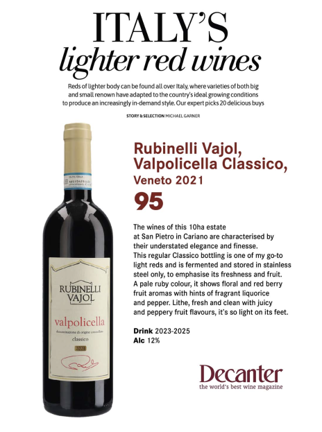 TOP 100 WINES OF ITALY suckling: My favorite Valpos include the Tedeschi Valpolicella Lucchine 2022, the Bertani Valpolicella Classico Le Miniere di Novare Bertani Cru 2021 and, above all, the Rubinelli Vajol Valpolicella Classico Superiore 2019, which comes from a producer that is arguably the new superstar of the style. All are examples of bright, transparent wines that will light up any table by virtue of their freshness and transparency.
