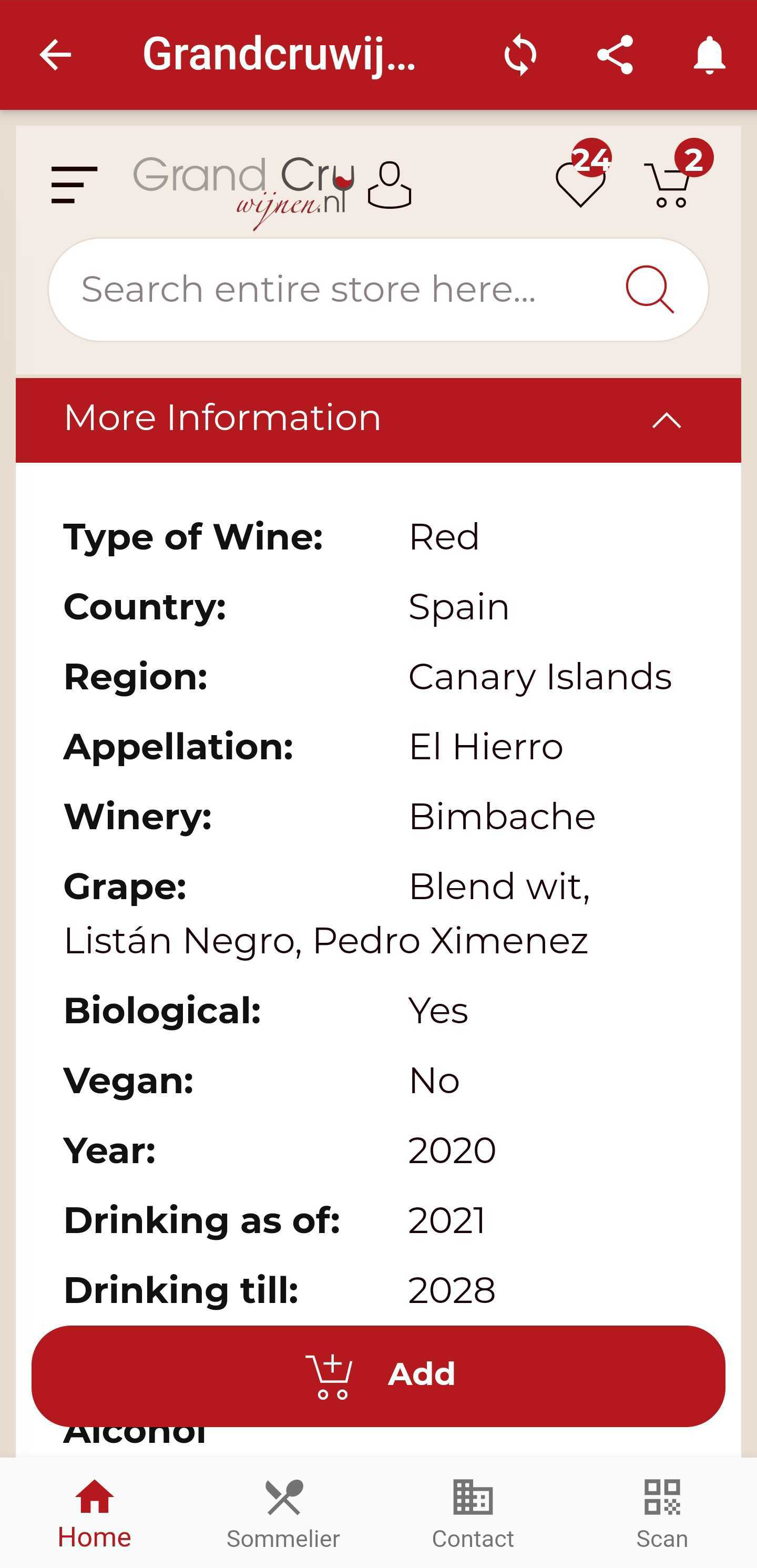 On the product page, you can easily select the amount of bottles you wish to order, or merely add the bottle to your wish list to have it saved for later.