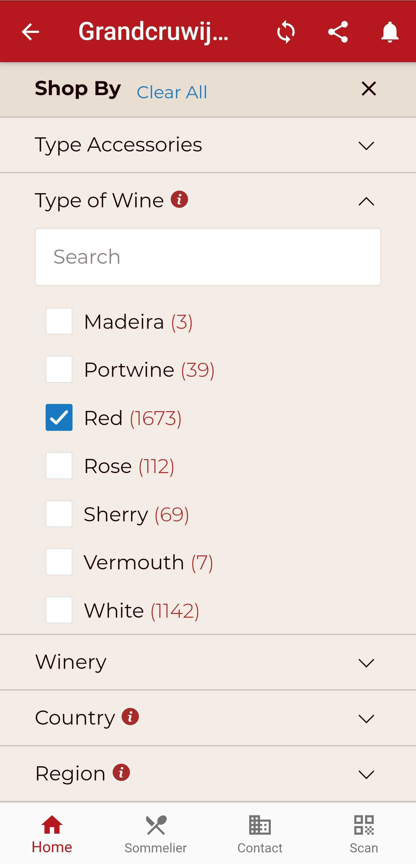 Clicking on the filter icon on the right side of the screen will show you the attributes you prefer to look for, such as winery, country, region, grape, price, and more.