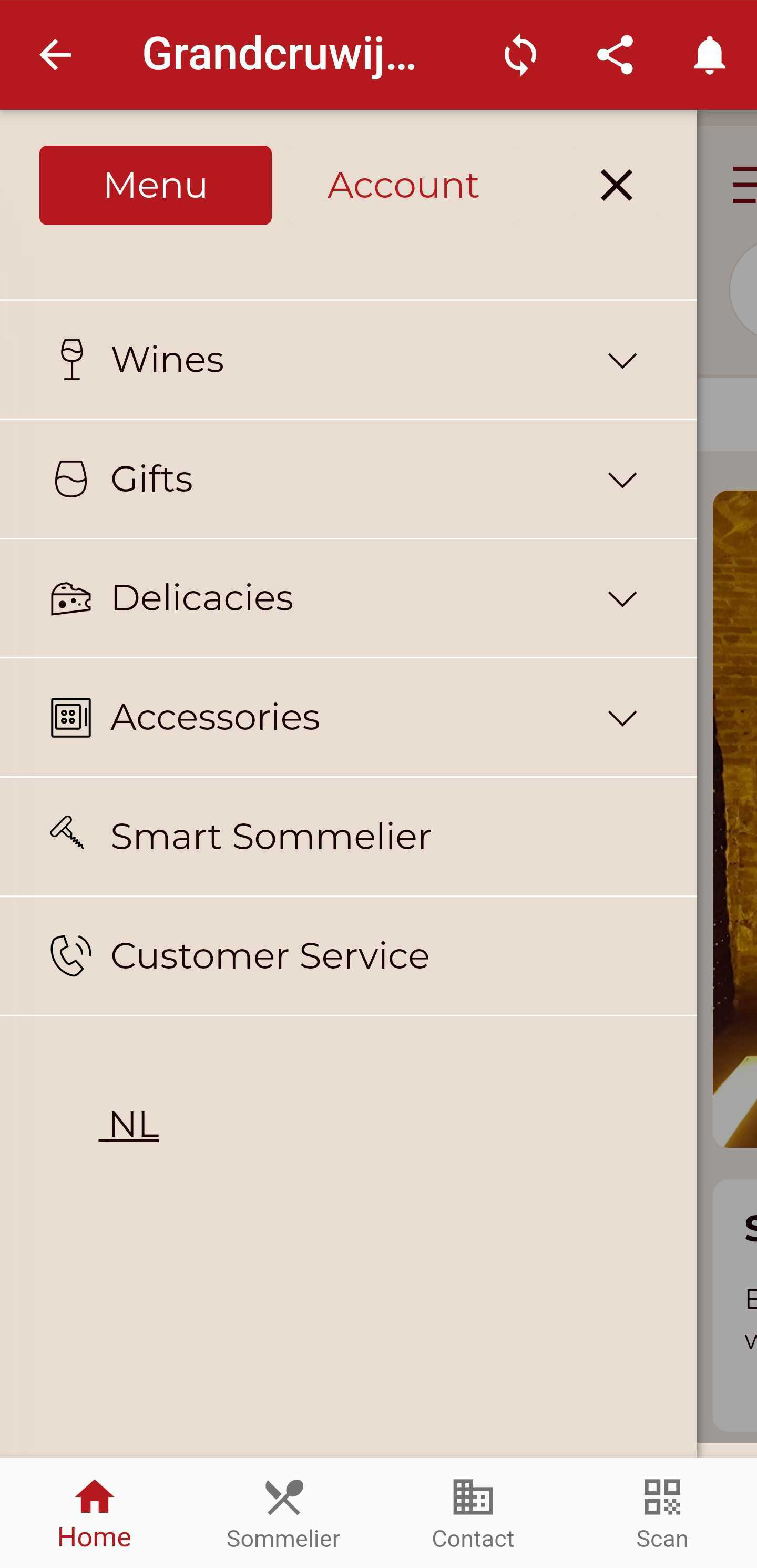 Here, you can select whether to search for wines by the type, whether to shop for gifts, delicacies or accessories.