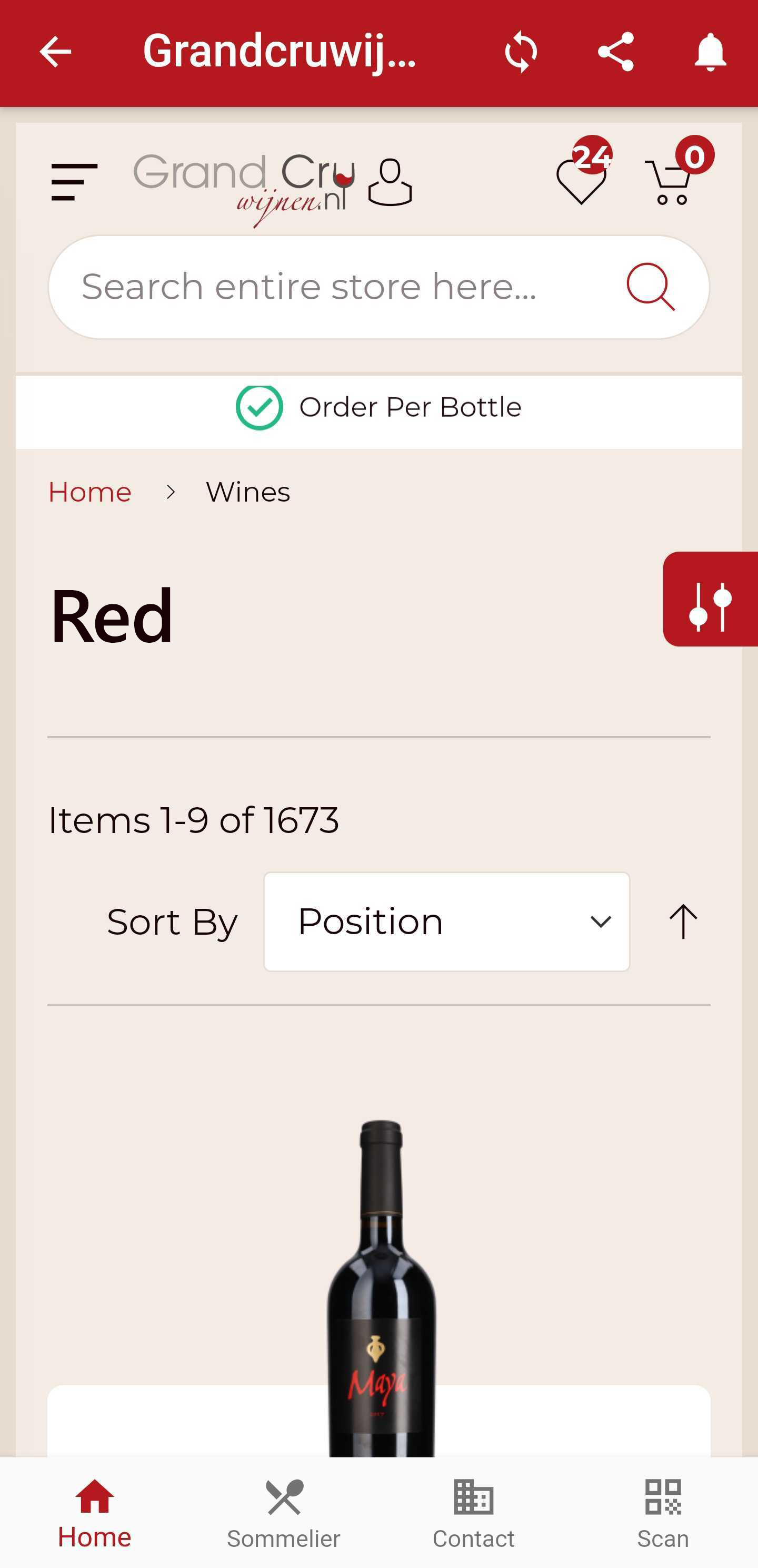 Once you have selected a preferred filter, in this example red wines, you get presented by a general overview of our assortment of red wines.