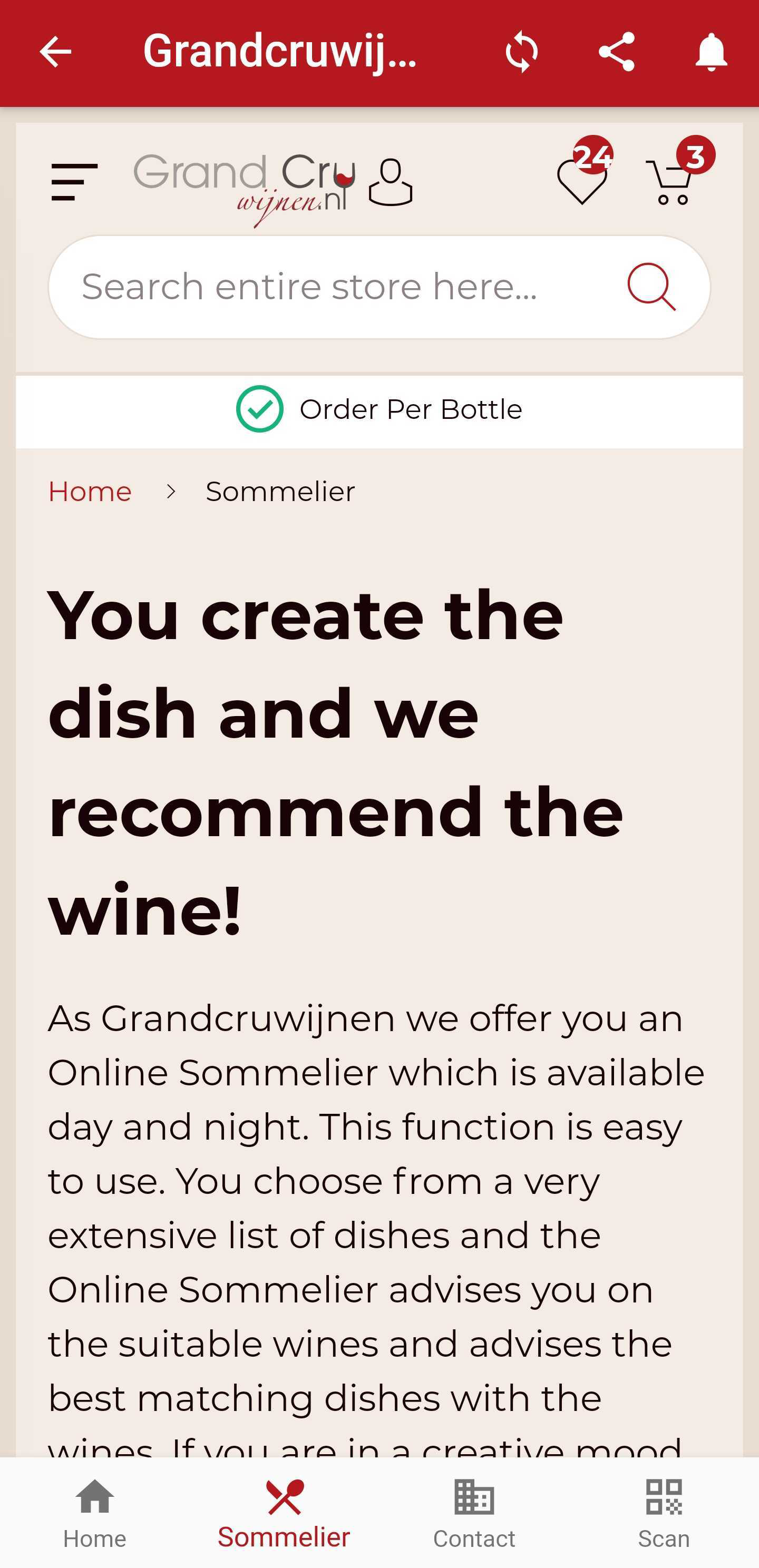 You have dinner plans, but are not sure what wine fits your meal best? Don't worry. Using an analysis of the composition of the meal, our online sommelier function will recommend the best-fitting wines to your chosen dish, creating a pairing that will ensure a delicious experience of both the food and the wine.
