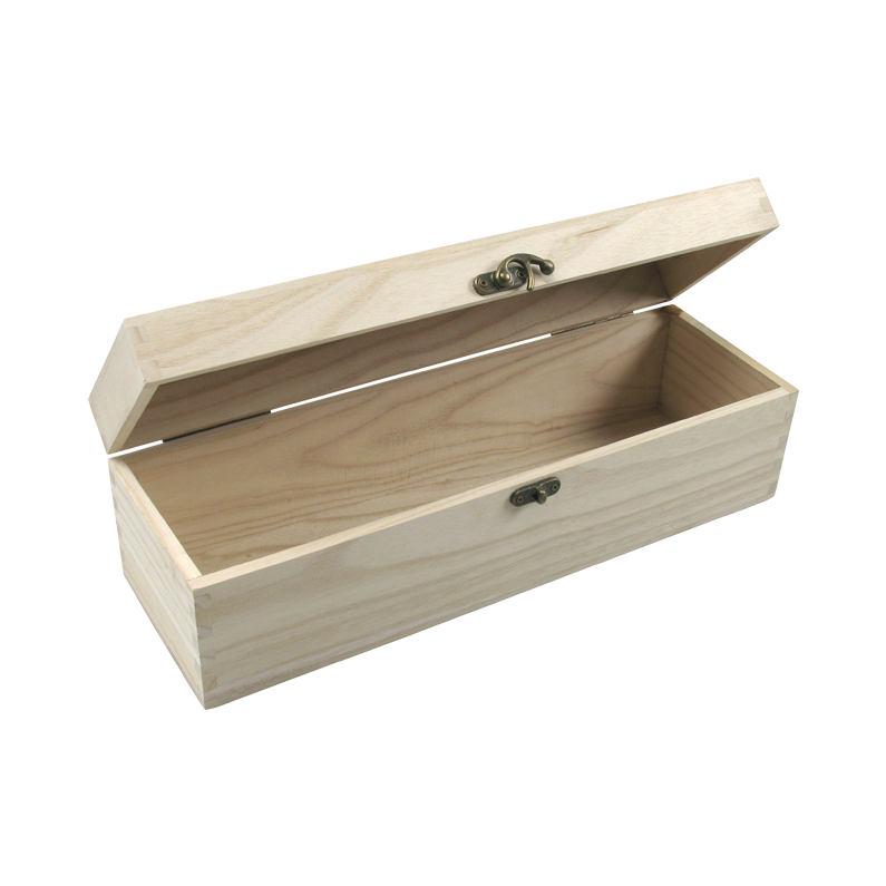 Luxe houten schanierkist geschikt voor 1 fles van 0.75l(niet voor champagnefles). Het kistje wordt opgevuld met houtwol zodat de fles goed is verpakt.